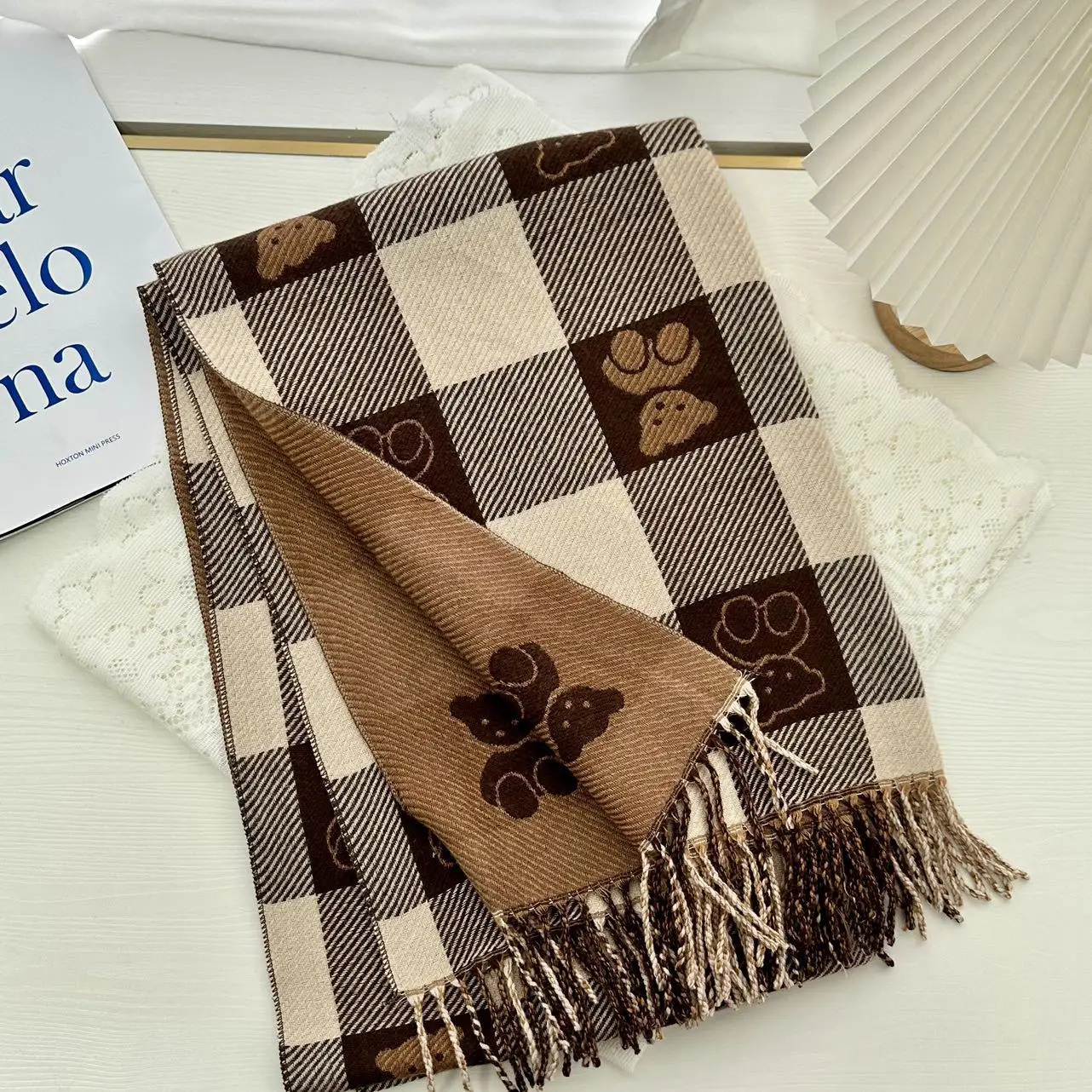 وشاح كشمير شتوي فاخر لعام 2025 للسيدات، بتصميم جديد وأنيق. يتميز بخامة باشمينا دافئة وسميكة، وطول مثالي لاستخدامه كشال أو فولارد. مطبوع بنقشة راقية تمنحك إطلالة فخمة وشتوية مميزة تناسب الحياة اليومية والمناسبات.