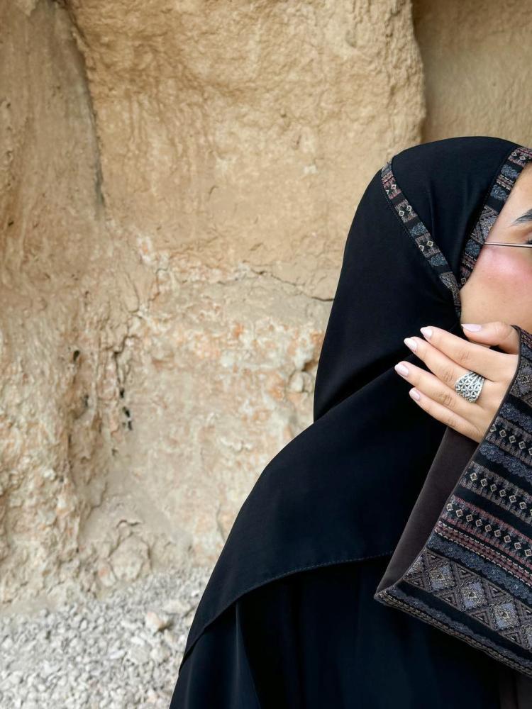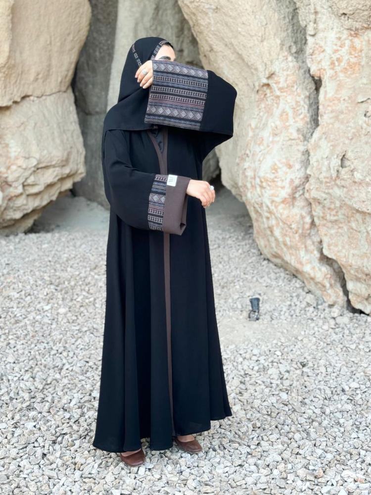 الملحقات : يوجد معها طرحة ساده بطرف من نفس قماش العباية الكشميري